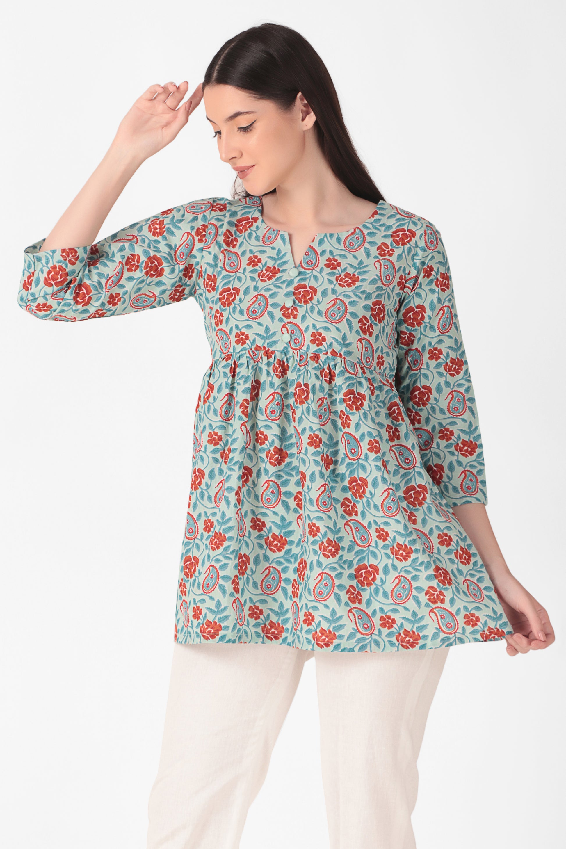 Floral Block Print Kurta Top
